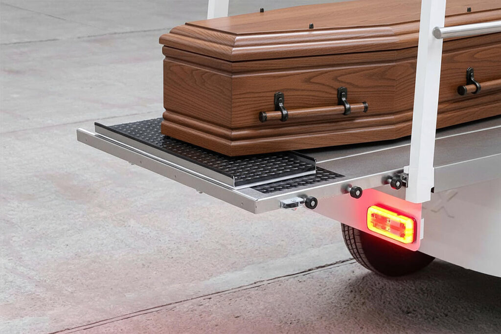 - Zadaszona elektronicznie wysuwana platforma na trumnę